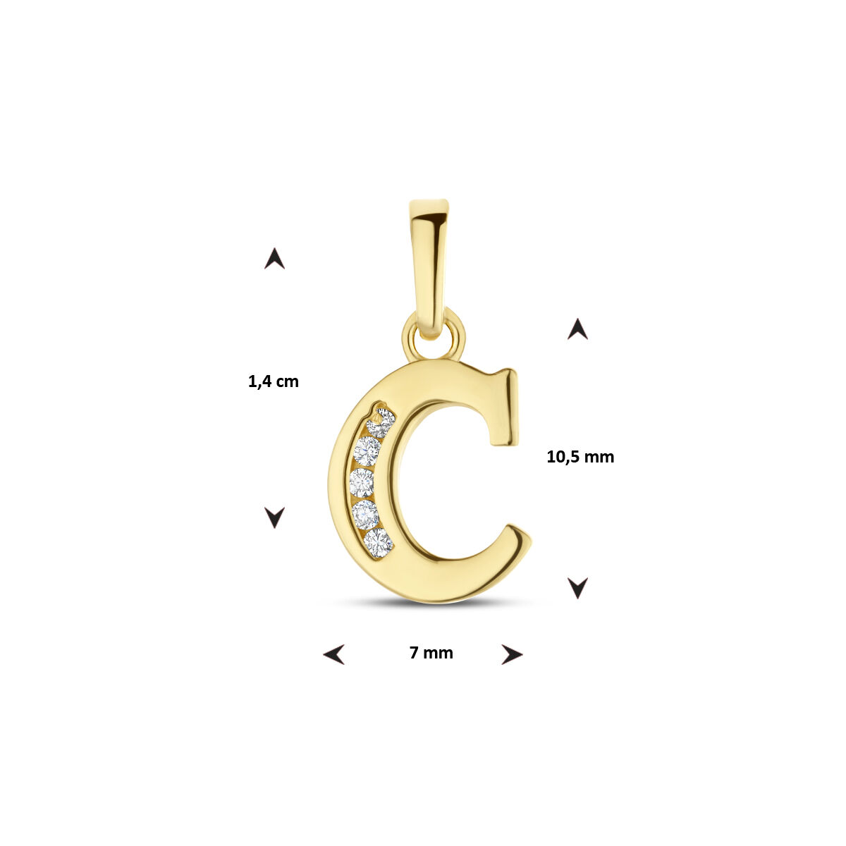 Goud Hanger Letter C Zirkonia 14 karaats