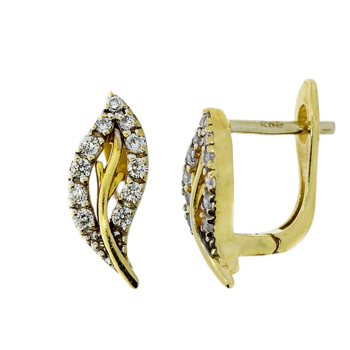 Gouden Blaadje Klap Oorbellen 14 mm 6 mm Zirkonia 14 karaats
