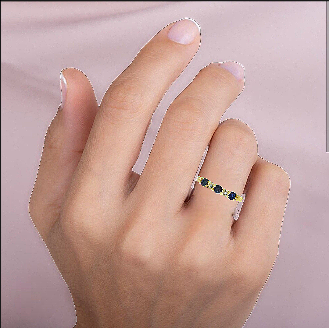 Wat deze ring echt bijzonder maakt, is de schitterende diamant met een gewicht van 0.04 karaat. De diamant is van een briljante slijpvorm, wat zorgt voor een optimale schittering en een prachtige uitstraling. Daarnaast is er ook een saffier steen toegevoegd, wat een subtiel vleugje blauw en transparantie aan de ring geeft.