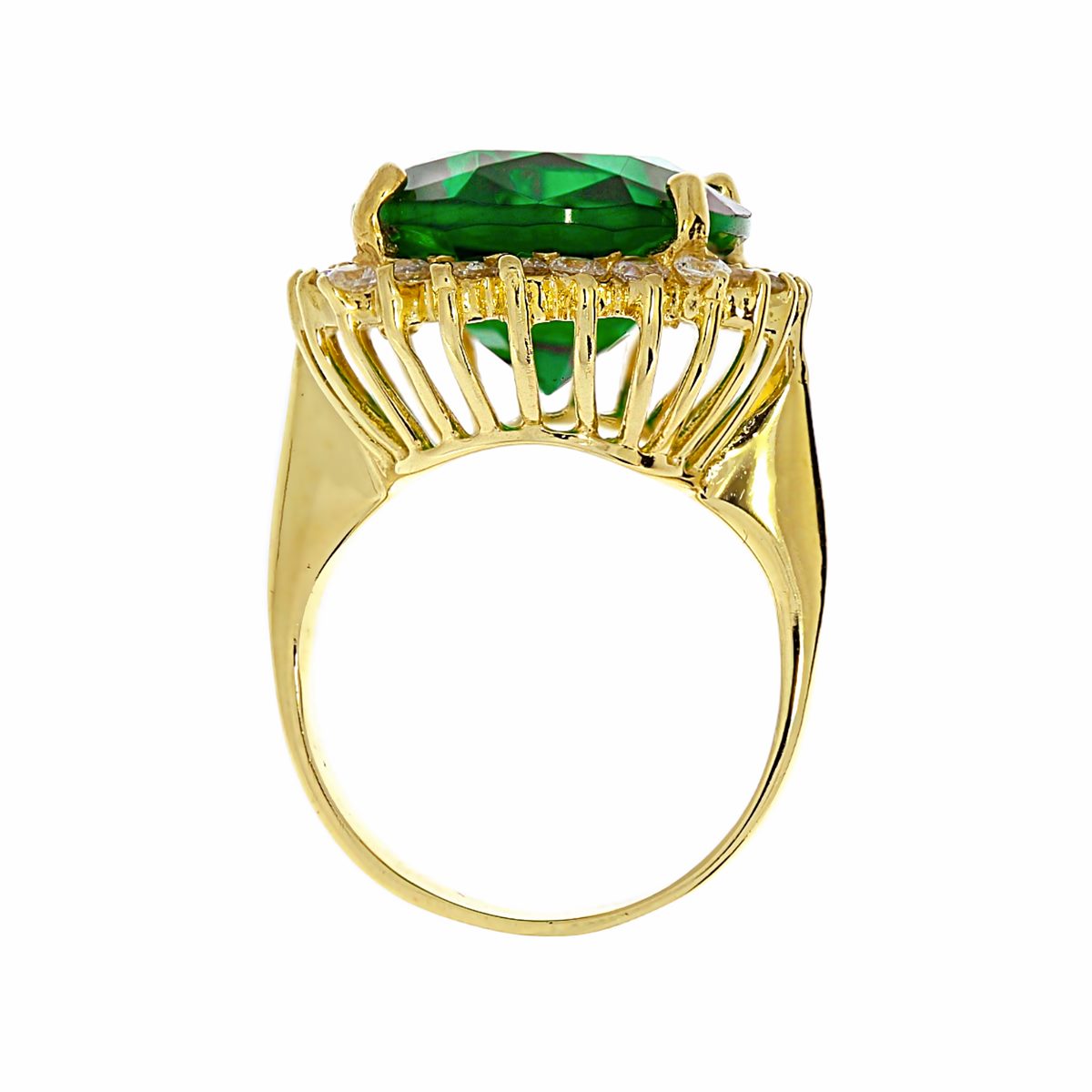 Deze schitterende gouden damesring met een smaragd zirkonia is een waardevolle aanvulling op elke sieradencollectie. Het verfijnde ontwerp en de opvallende groene steen maken van deze ring een echte blikvanger die elke outfit compleet maakt.