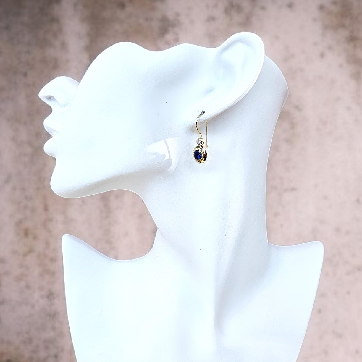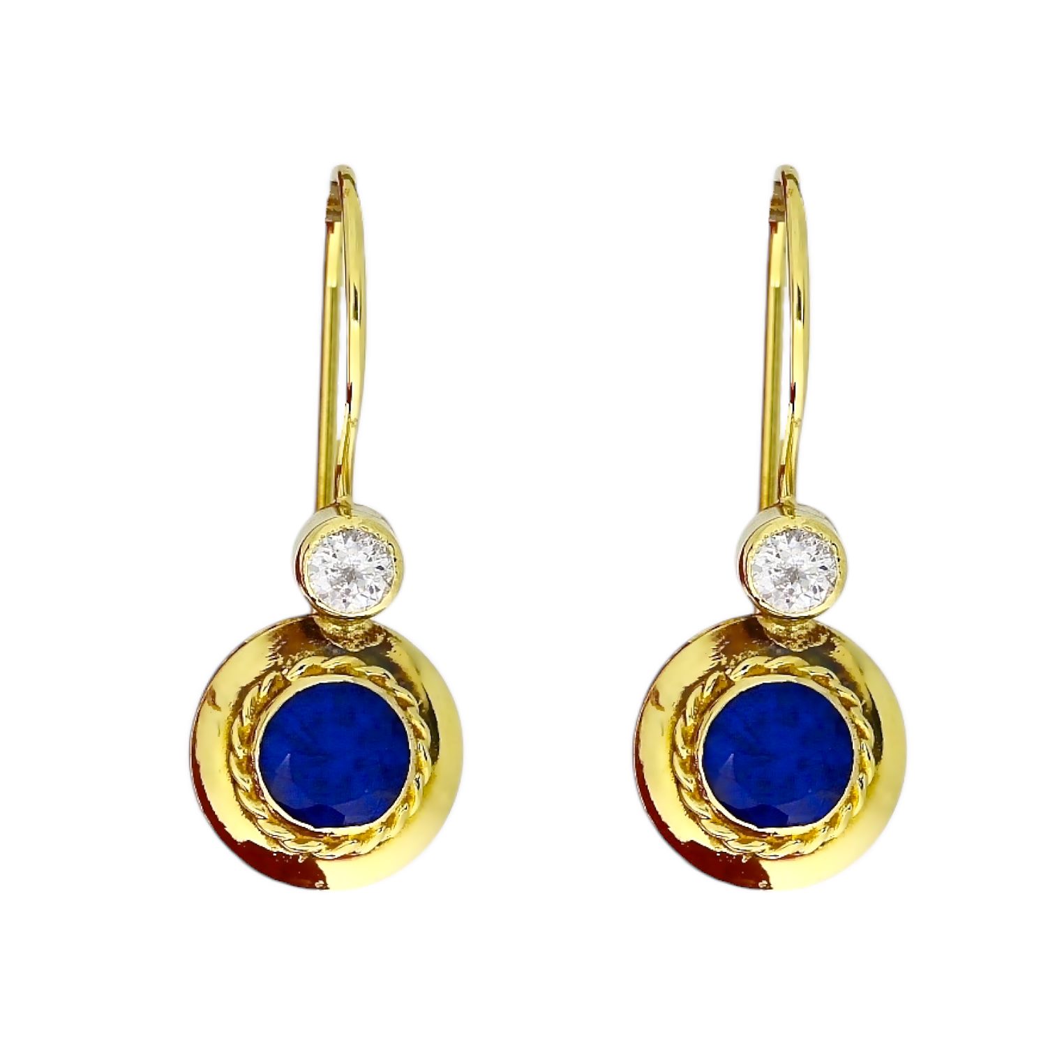 Deze charmante 14 karaats gouden klap oorringen stralen een verfijnde elegantie uit, perfect voor de moderne vrouw met een klassieke smaak. Het warme geelgoud vormt een prachtige omlijsting voor de diepblauwe steen in het midden, die subtiel omringd wordt door een gedetailleerde gouden rand. Boven de centrale steen schittert een heldere zirkonia, die zorgt voor een vleugje sprankeling bij elke beweging.