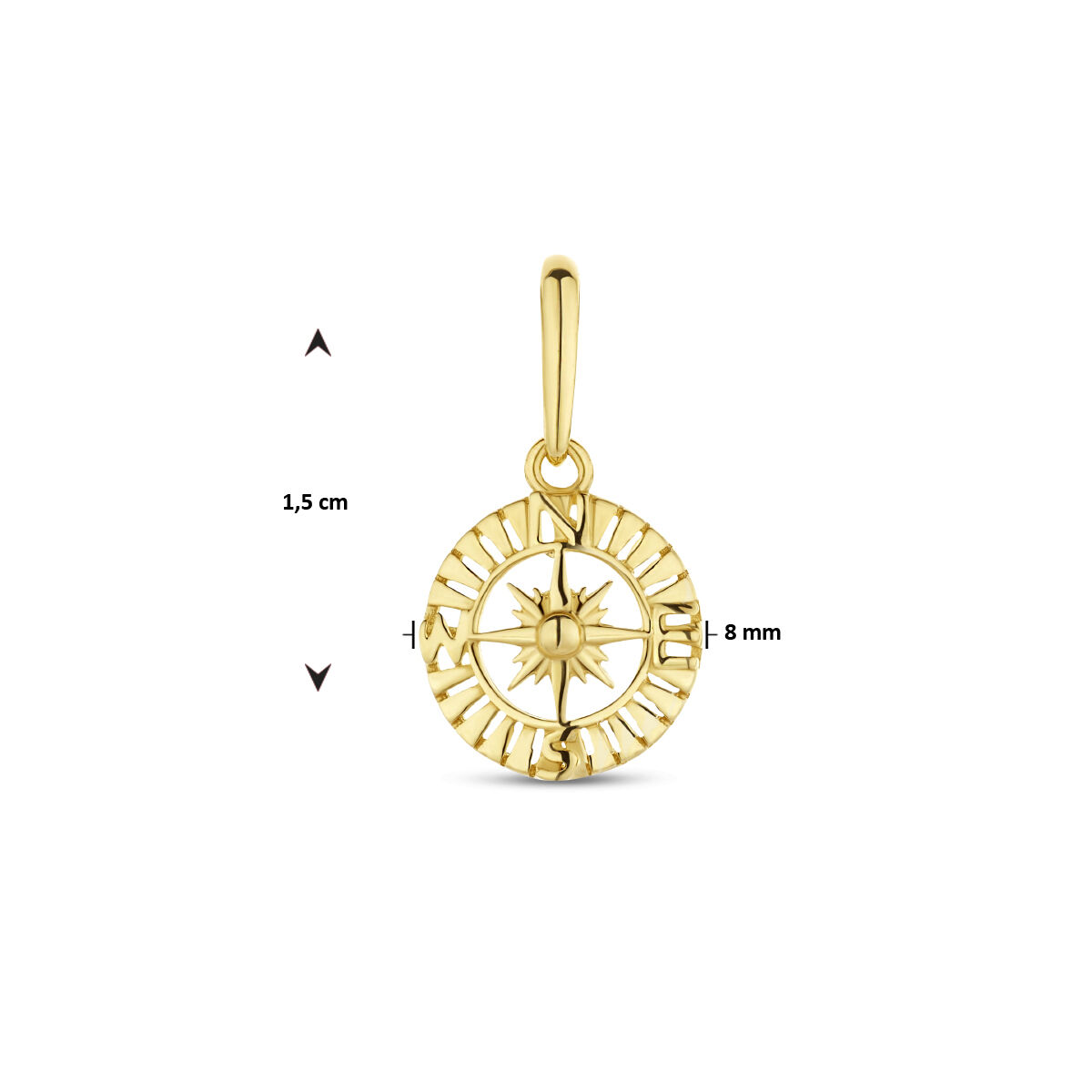 Ontdek de betoverende Gouden Kompas Hanger Bedel, vervaardigd uit 14-karaats goud.. Deze verfijnde hanger symboliseert richting en avontuur, perfect voor degenen die hun eigen pad volgen.