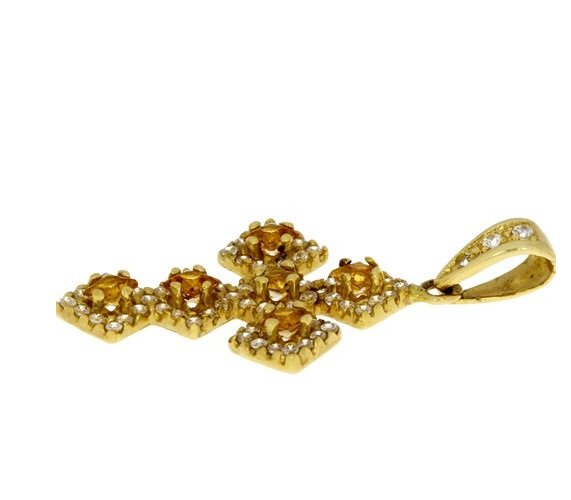 Gouden Kruis Hanger 38 mm 22 mm Citrien Zirkonia 14 karaats