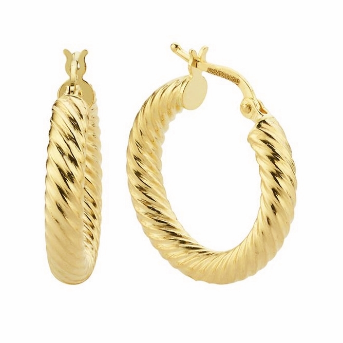 - Verfijnd Design: Het gedraaide patroon biedt een moderne twist op de klassieke hoepeloorbel.