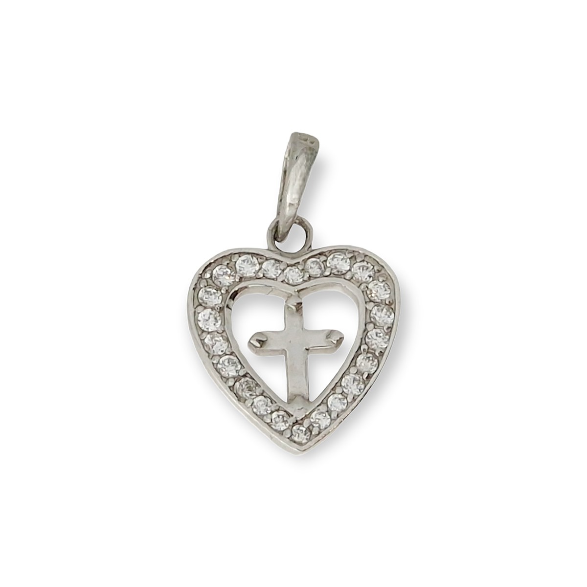Witgouden Hart Kruis Hanger Zirkonia 14 mm 14 mm 14 karaats