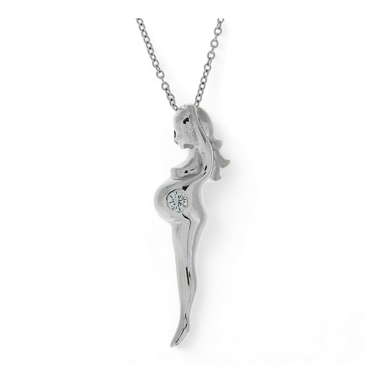 - Symbolische zwangere vrouw hanger in 18 karaats witgoud.