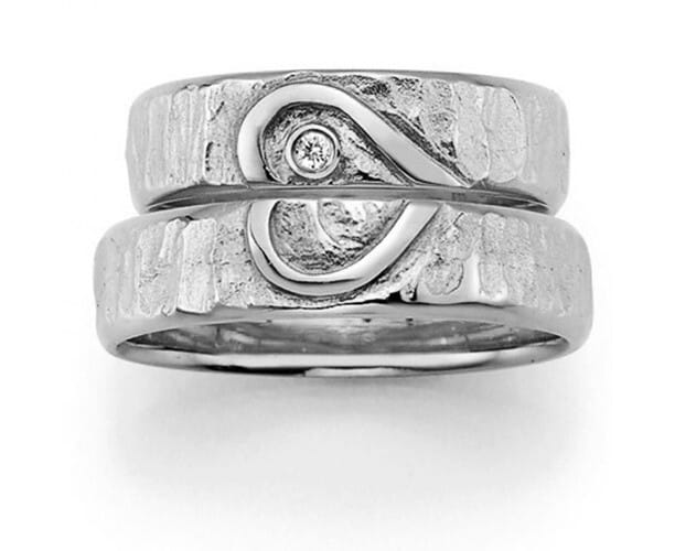 Zilveren Trouwringen Hart Diamant Gehammerd