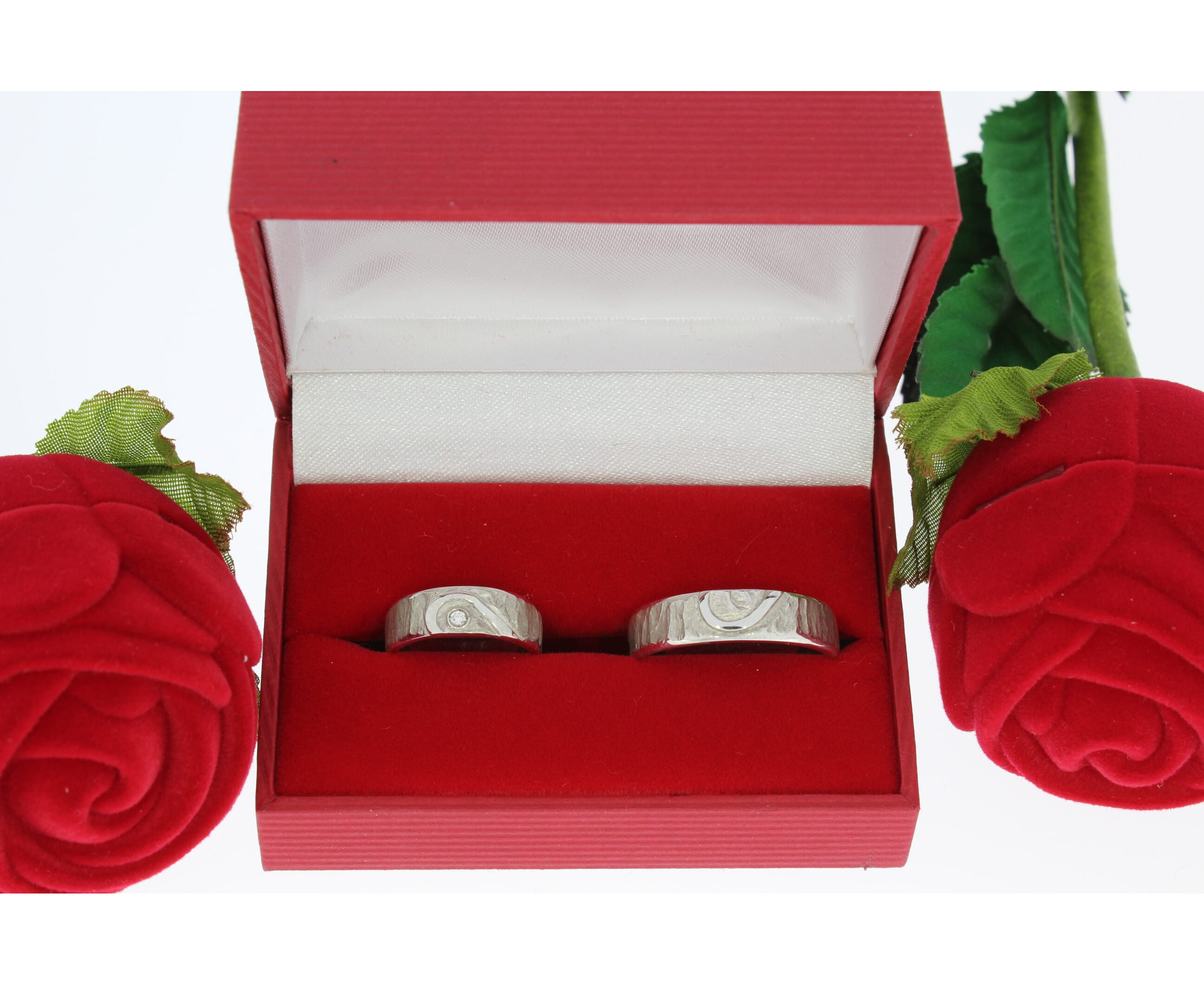 Deze trouwringen zijn perfect voor koppels die op zoek zijn naar een uniek en persoonlijk symbool van hun liefde. De hartvormige afbeelding en het diamantje op de damesring zijn prachtige details die deze ringen extra speciaal maken. Bovendien is het gehamerde uiterlijk van de ringen tijdloos en zal het nooit uit de mode raken.