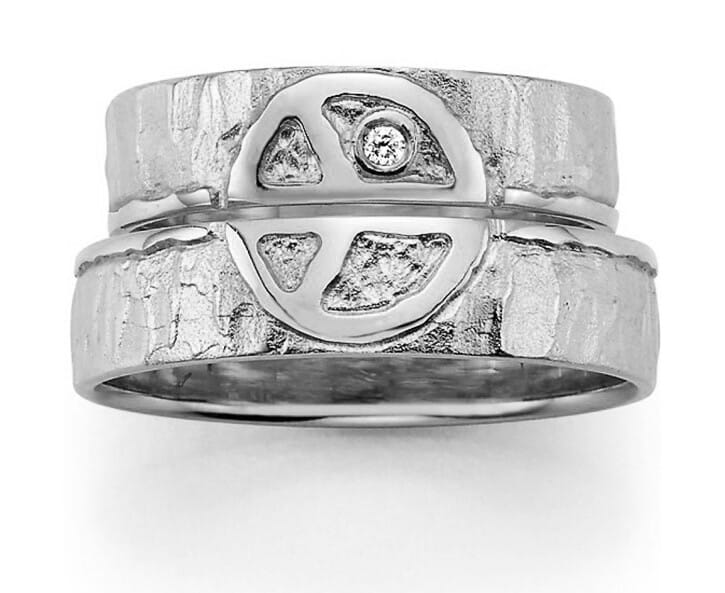Zilveren trouwringen zijn al eeuwenlang een symbool van liefde en toewijding. En met deze zilveren trouwringen met vredesdiamant en gehamerd ontwerp, krijgt dit symbool nog meer betekenis.