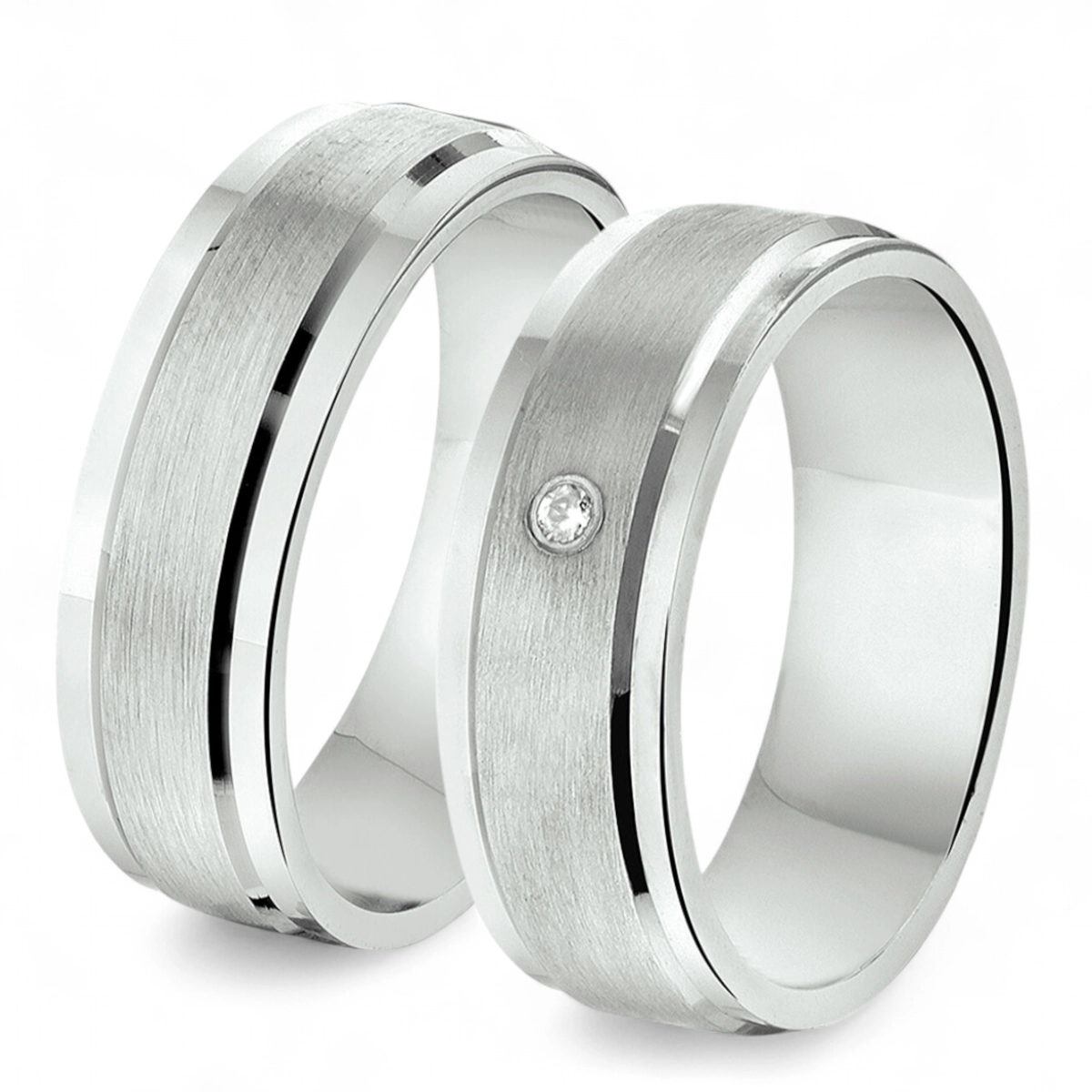 De zirkonia steentje is subtiel gezet in de ring en voegen een vleugje glans toe. De gematteerde en gepolijste strepen geven de ringen een unieke uitstraling en zorgen ervoor dat ze opvallen. Bovendien kun je de ringen laten graveren met een persoonlijke boodschap, zoals jullie initialen of een speciale datum. En dat alles gratis!